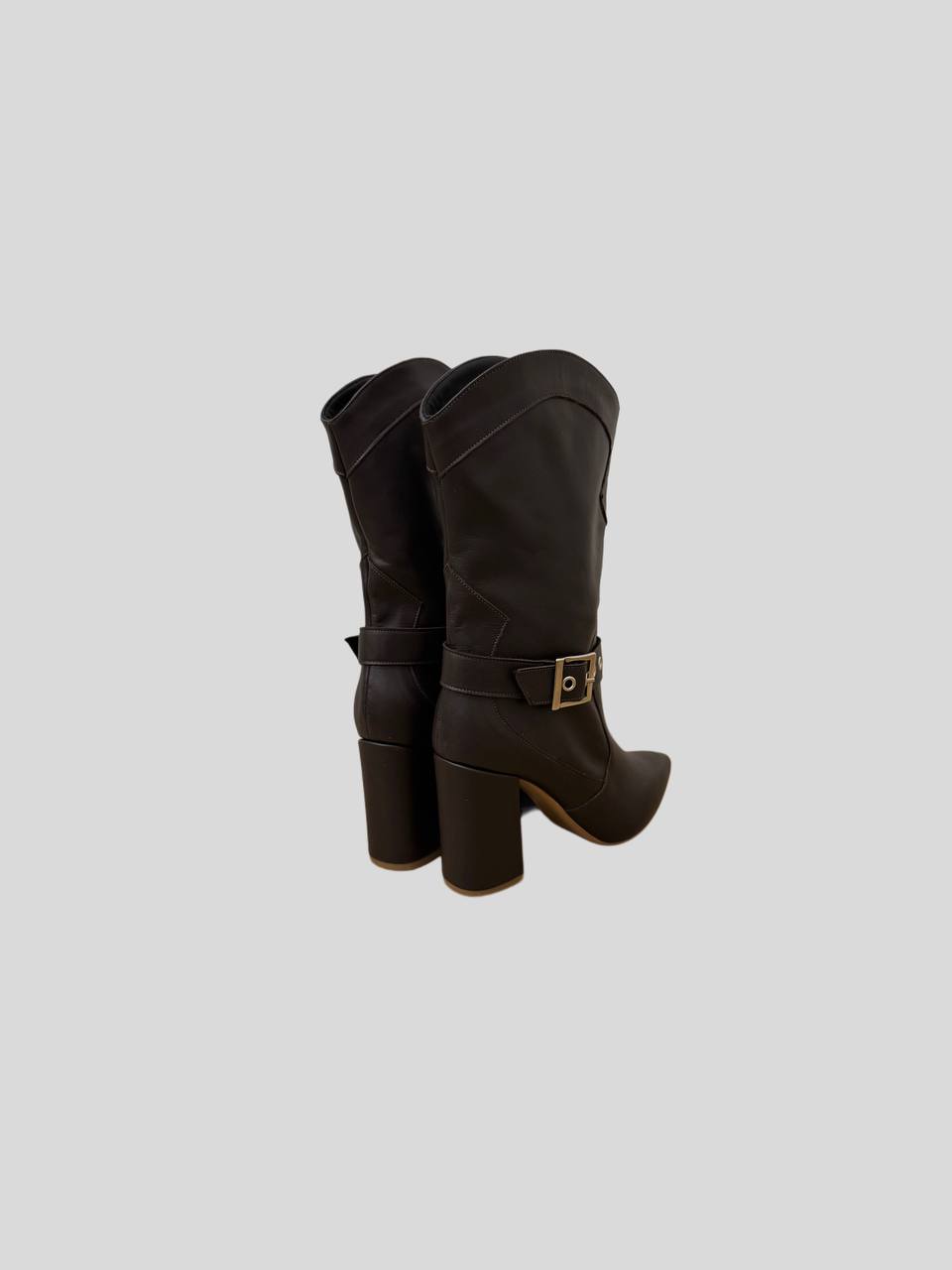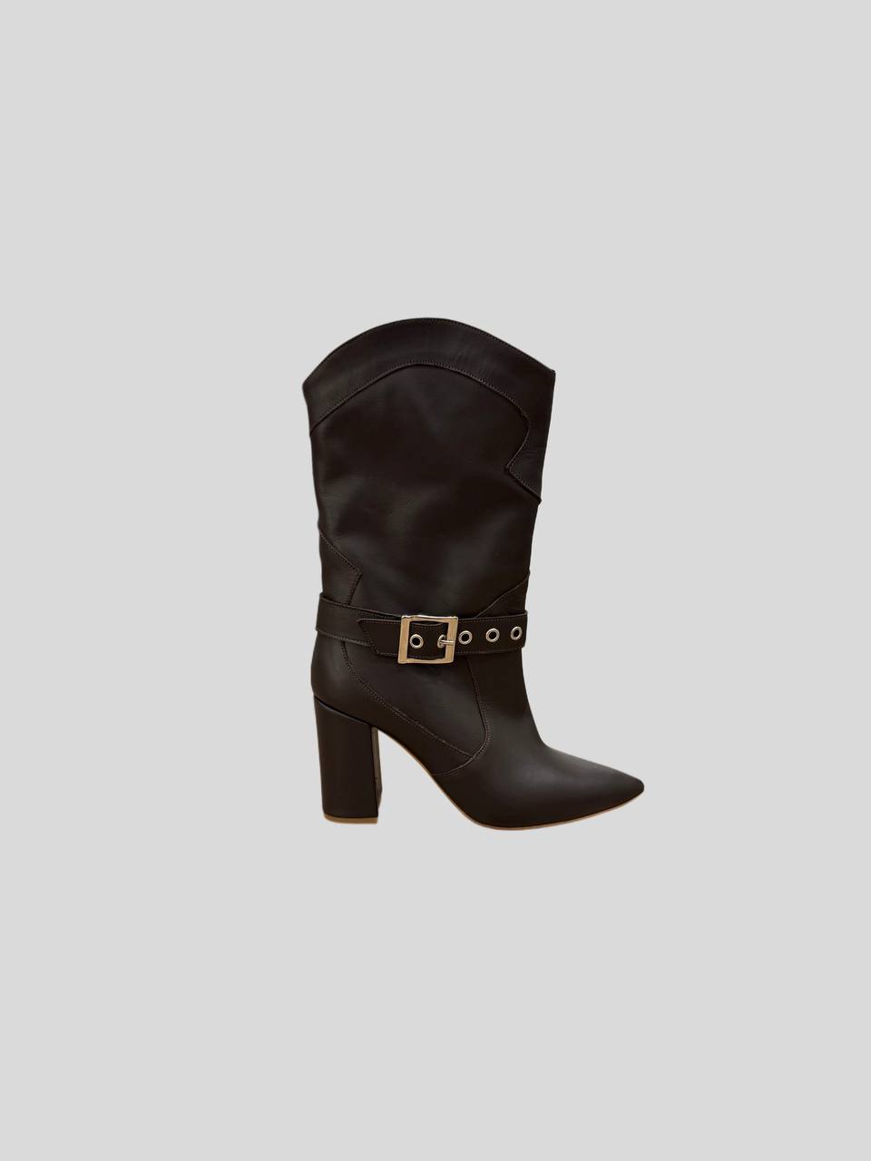 Stivaletto stile texano con tacco dritto e cinturone borchiato alla caviglia